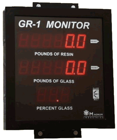 The standard industrial control unit is 18 inches wide by 20 inches tall by 3 inches deep. It is made of heavy gauge aluminum with a powder coat finish. The front window is tempered glass. There are two rows of six, and one row of three, 2-1/8 inch tall digits. Toggle switches are mounted on the side for control functions. Power and sensor connections are on the bottom. Power is supplied to the unit at low voltage and low current. All inputs and outputs are isolated. All external connections to power or ground are protected by self-reset fuses. Two isolated RS-485 connections are provided for networking with other control units, displays, and PC's. Any of our digital, alphanumeric, or dot matrix boards can be added to the network. Call us with your requirements. We can provide a wide range of machine control and data display systems. |