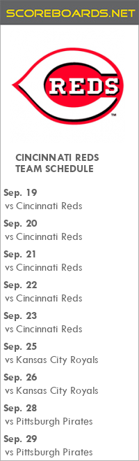 Create Reds scoreboard widget and publish it on your webpage! You can demonstrate baseball games schedule with dates, opponents, time and score. Look at following simple steps to install your team's widget: 1. Look at the available banner sizes and select the size of the banner that fits your website best. 2. Click the Get Widget HTML Code button next to selected banner size. 3. Scroll down to see the html code of the widget. 4. Copy html code and paste it into your website content management system. 5. Feel free to make adjustments to widget style, but keep the link to make sure widget is displaying accurate and updated data for Reds team.