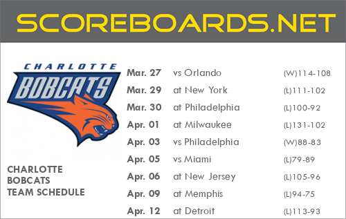 Create Bobcats scoreboard widget and publish it on your webpage! You can demonstrate basketball games schedule with dates, opponents, time and score. Look at following simple steps to install your team's widget: 1. Look at the available banner sizes and select the size of the banner that fits your website best. 2. Click the Get Widget HTML Code button next to selected banner size. 3. Scroll down to see the html code of the widget. 4. Copy html code and paste it into your website content management system. 5. Feel free to make adjustments to widget style, but keep the link to make sure widget is displaying accurate and updated data for Bobcats team.