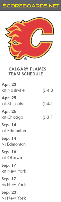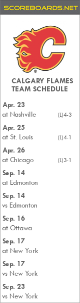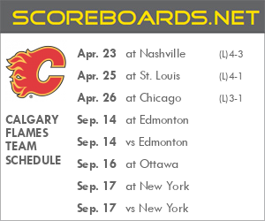 Create Flames scoreboard widget and publish it on your webpage! You can demonstrate hockey games schedule with dates, opponents, time and score. Look at following simple steps to install your team's widget: 1. Look at the available banner sizes and select the size of the banner that fits your website best. 2. Click the Get Widget HTML Code button next to selected banner size. 3. Scroll down to see the html code of the widget. 4. Copy html code and paste it into your website content management system. 5. Feel free to make adjustments to widget style, but keep the link to make sure widget is displaying accurate and updated data for Flames team.